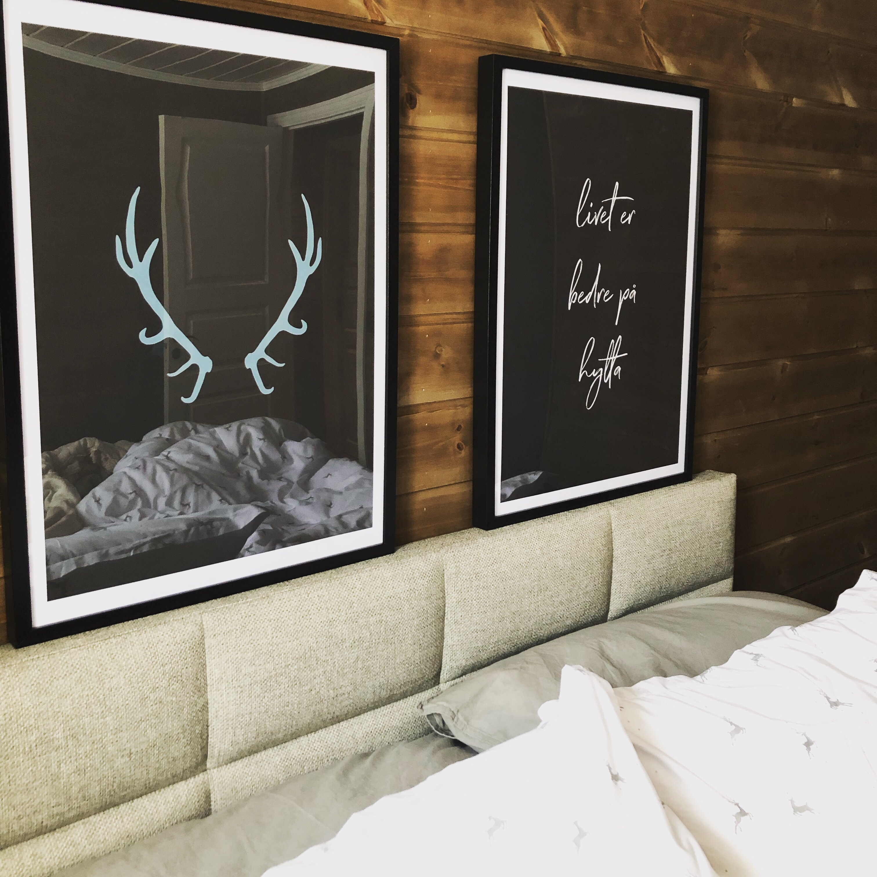 Endelig fikk vi montert sengegavl og hengt opp lamper og bilder på soverommet🤩Veldig fornøyd!