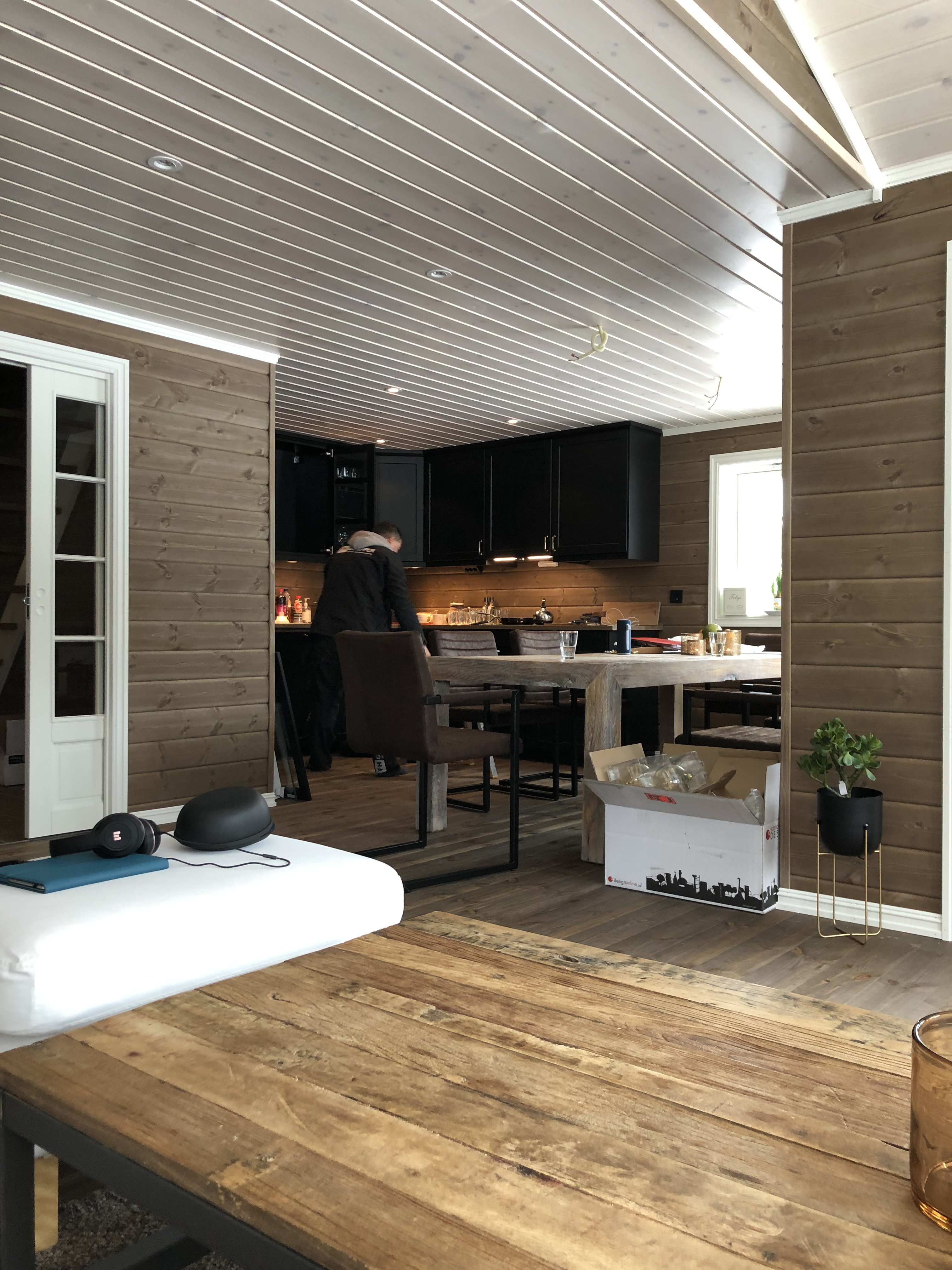 Vaskemaskinen ble testet. Gud, så herlig med vaskemaskin på hytta! Denne har også tørkefunksjon, noe som er gull! Et lite baderomstips for andre hyttebyggere er lyssensor💡 Dette har vi valgt å ha i gang og på badet. Denne gjør at lyset slår seg på ved bevegelse. Skulle du stå ekstra lenge i dusjen, slik at lyset slår seg av… Ja, da er det bare å åpne døren litt, så blir det lys.