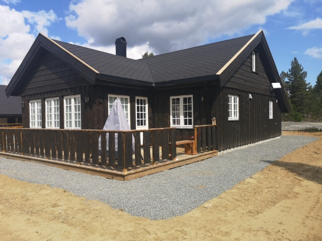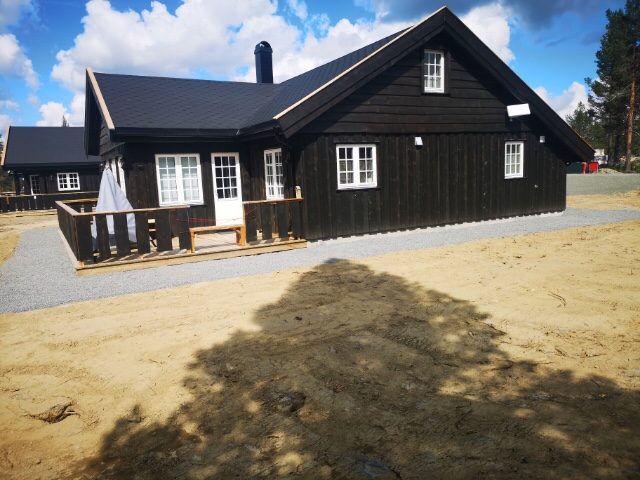 I dag ble arbeidet rundt hytta klart. Vi skal utvide terrassen, da vi synes at terrassen som er standard på Familiehytta blir litt liten. I tillegg ønsker vi en terrasse uten rekkverk. Dette gir oss bedre utsikt, og det er enklere å måke snø av terrassen på vinteren😁